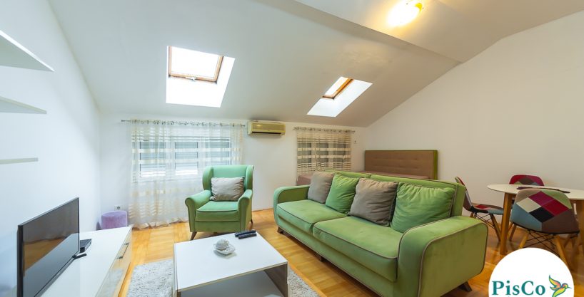 The studio is located on the top floor of a residential building at Stari Aerodrom, between Market Aroma and Voli. In addition to the market, there is a bakery, pharmacy, post office, and bank nearby. There is a free parking lot in front of the building. The building has an elevator and a neat entrance.