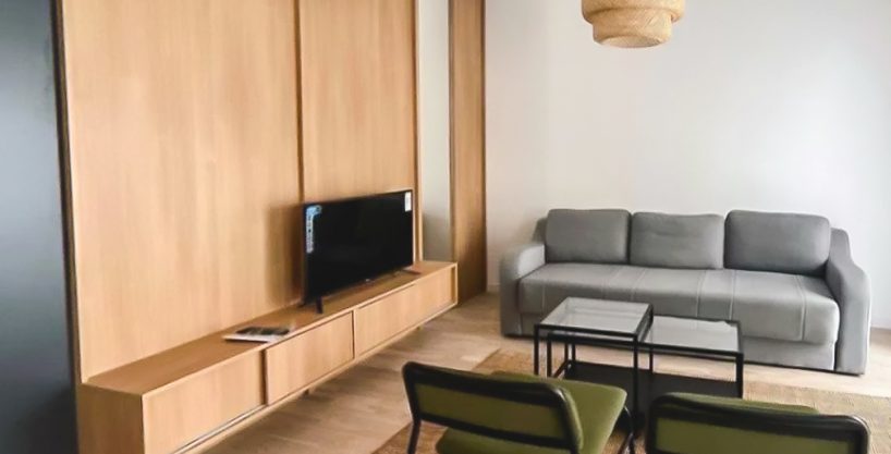 The apartment is new, nicely decorated, ready to move in immediately. The living room has a corner sofa, TV and air conditioning. There is a dining room with a table and chairs located next to the balcony door. The kitchen and dining area are very spacious, the kitchen is new, with a sleek design, and equipped with all the necessary appliances. The bedroom has a double bed and a French balcony. The bathroom has a large shower cabin and a washing machine.