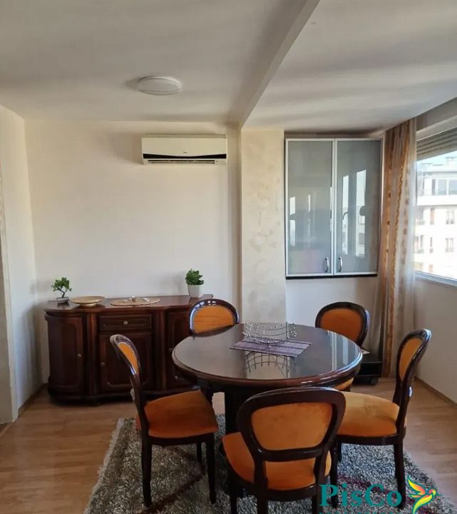 Stan se nalazi na petom spratu zgrade sa liftom i pruža prelijep pogled na okolinu. Kompletno je opremljen svim neophodnim uređajima, uključujući veš mašinu, frižider, šporet i TV. Takođe, klimatizovan je u dnevnoj sobi i obje spavaće sobe, što osigurava udoban boravak tokom cijele godine.