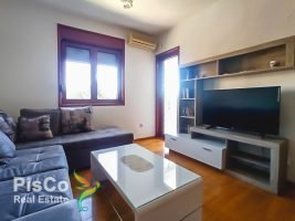 Stan je jednosoban, potpuno je namješten i odmah useljiv. Dnevni boravak ima ugaonu garnituru, TV i klima uređaj. U nastavku je trpezarija, kao i kuhinja. Spavaća soba je sa bračnim krevetom, i ima izlaz na prelijepu terasu duž koje se prostire pogled na Podgoricu. Kupatilo posjeduje tuš kabinu i veš mašinu.