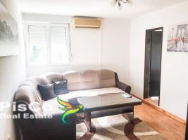 Ovaj jednosoban stan od 40m2 ima prostranu i osunčanu dnevnu sobu sa udobnom ugaonom garniturom i plazma Tv-om. Mala trpezarija povezana je sa lijepo opremljenom kuhinjom koja ima sve neophodne kuhinjske elemente i uređaje. Spavaća soba ima veliki francuski krevet sa kasetom kao i veliki garderober. Stan izlazi na jednu terasu koja je jako osunčana. U okolini zgrade ima mnogo parking mjesta. Stan je klimatizovan.