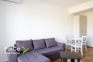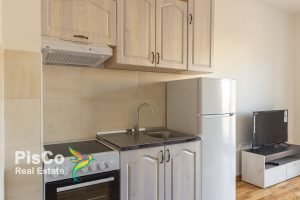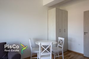 Garsonjera je veoma komforna, lijepo osvijetljena i potpuno opremljena novim namještajem. Posjeduje ugaonu garnituru, TV i klima uređaj, lijepu kuhinju svijetlih tonova. Takođe, tu je i trpazarijski sto, kao i orman. Kupatilo je sa velikom tuš kabinom i veš mašinom. U hodniku je plakar. Garsonjera ima i terasu.