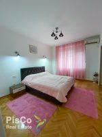 Dnevni boravak je lijepo uređen, sa ugaonom garniturom, posjeduje još TV i klima uređaj. U sklopu je trpezarijski sto sa stolicama, a u nastavku i kuhinja. Ona je nova, lijepog dizajna, sa svim neophodnim uređajima. Spavaća soba je prostrana, sa velikim bračnim krevetom i ormanom. Kupatilo je takođe renovirano, lijepo sređeno, sa tuš kabinom i veš mašinom. Pruža se lijep pogled na glavni gradski trg.