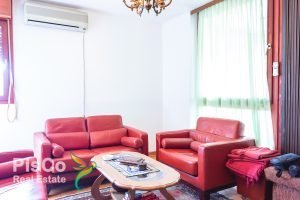 Stan je dvosoban, površine 95m2, veoma lijepog rasporeda, prostran i komforan. Dnevni boravak je sa garniturom, TV i klima uređajem. Iz njega se ulazi u trpezariju koja je smještena pored balkonskih vrata. Kuhinja je potpuno odvojena, i u nju se ulazi iz hodnika i iz trpezarije. Jedna spavaća soba je velika, sa bralnim krevetom i velikim ormanom, i manjim balkonom. Druga spavća soba je manja, sa jednim singl krevetom i ormanom kao i treća soba.