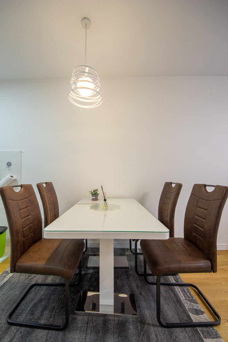 Stan je moderno uređen, komforan i prijatno osmišljen za svakodnevni boravak. Dnevni boravak je povezan sa kuhinjom i trpezarijom, dok je spavaća soba funkcionalna i odvojena. Stan posjeduje lijepu terasu, moderno kupatilo i kompletno je opremljen savremenim namještajem i tehnikom.