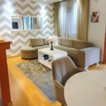 Stan je moderno i kompletno namješten. Dnevni boravak je prostran, sa velikom ugaonom garniturom i TV-om, dok je kuhinja potpuno opremljena, uključujući šporet, mikrotalasnu pećnicu i ostale potrebne uređaje. Spavaća soba je udobna i sadrži bračni krevet, ormar i klimatizaciju. Sve je uređeno s puno pažnje na detalje, što doprinosi ugodnom boravku.