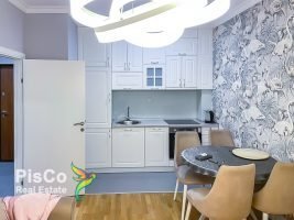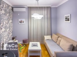 The apartment is one bedroom, 34m2. It is fully equipped with new furniture and appliances. The living room has furniture, air conditioning, and nice decorative details. As part of the living room, there is a dining room, followed by a kitchen with bright tones and a nice design, with all the necessary appliances. The bedroom has a double bed and a wardrobe. The bathroom has a shower and washing machine. The apartment has a balcony that can only be accessed from the living room.