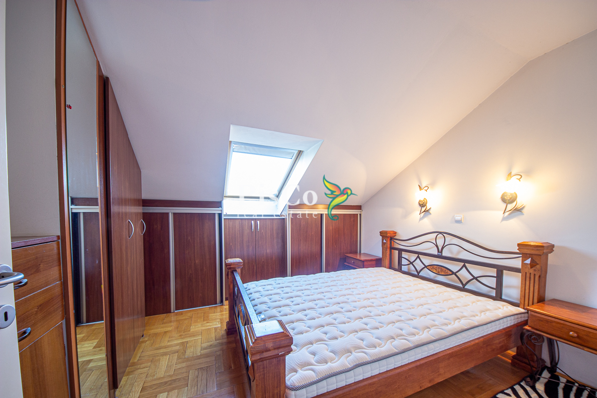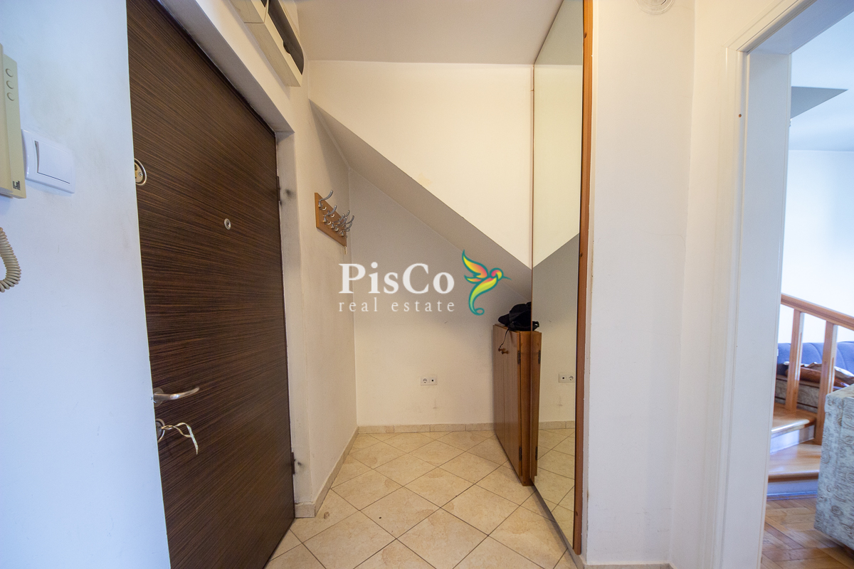 Stan je duplex strukture. U donjem nivou se nalaze dnevni boravak, trpezarija sa odvojenom kuhinjom i kupatilo. Na spratu je smještena spavaća soba, dodatni toalet i izdvojen prostor pogodan za kućni office ili radni kutak. Prostor je funkcionalno organizovan.