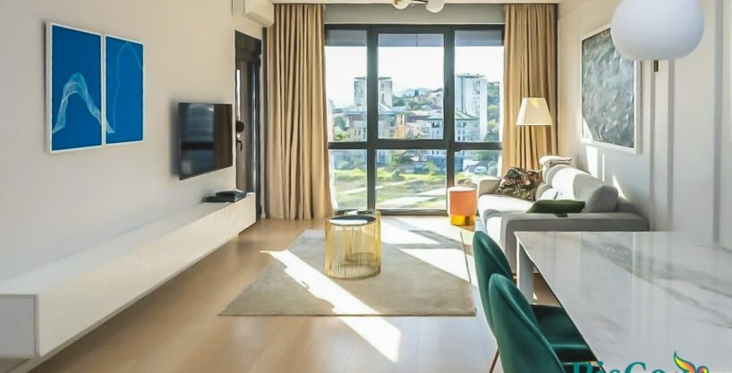 This beautifully furnished apartment is located near the city center in the “Fidija” building, which is also an excellent new building. The building has a modern elevator, and the apartment has a beautiful view of the river because it is located on the higher floors. It faces south-west.