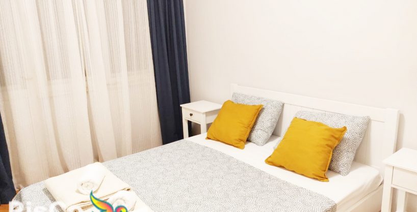 The apartment is extremely spacious and comfortable, as evidenced by its area of 43m2. It is equipped with high quality furniture and a very nice design that fits into the concept of the apartment. The living room is large and very bright. The kitchen and dining room are separate from the living room and have all the necessary elements and appliances. There’s also a bedroom decorated with a large, comfortable double bed. The apartment is air-conditioned.