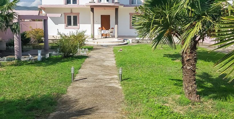 There is a house of 300m2 on a beautifully landscaped and fenced lot. It has three rooms, furnished with Italian style furniture and high quality appliances. It is ideal for those who like unusual interior and design. At the very entrance is a long corridor with plenty of storage pieces of furniture, in the form of closets and chests of drawers. The living room is spacious and nicely lit, with a corner sofa, a TV and a fireplace. There is a smaller dining table with chairs located next to the balcony door. The kitchen is separated by a smaller wall, and there is another small dining table in it. The kitchen has a nice design, with all necessary appliances. There is also a lot of light in the kitchen due to another small balcony door.