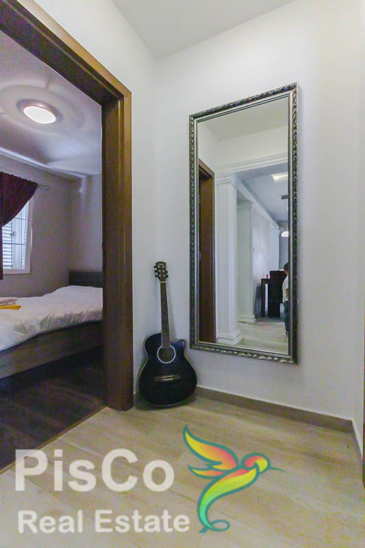 The interior of the houseAll interior rooms are stylized and done in a very warm and modern style that provides maximum comfort. The space is divided into two parts, the lower one with two bedrooms, a large bathroom and a living room and the upper one with a living room, terrace, bathroom and two smaller bedrooms. Plenty of built-in closets and places to store things. The large kitchen is located on the lower floor and the kitchenette is on the upper floor. The overall impression is very positive.