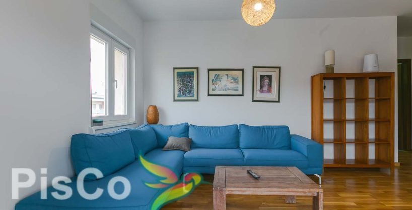 The apartment has a 52 m2 large terrace facing west. The interior rooms are also large and spacious, especially the bedroom. The furniture is very modern and functional, and there is plenty of storage space. The kitchen is almost done with a new dishwasher, oven and stove. An additional TV is installed in the bedroom.