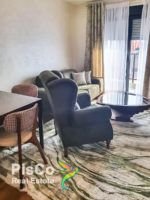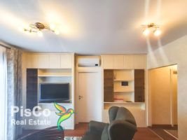 The apartment is fully equipped, with new and modern furniture. The living room is bright and comfortable, and has access to the balcony. Below is the dining table with chairs, and then the kitchen. It is also new, equipped with all the necessary devices. The bedroom is spacious and also nicely lit and with access to the balcony, and also has a wardrobe. The bathroom has quality ceramics, a large shower and a washing machine.