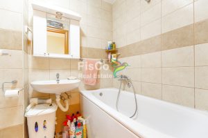 The apartment is minimally furnished, with one bedroom. The floors are covered with Tarkett, while other areas are finished with ceramic tiles. The partition walls are made of brick. We found the apartment to be very functional. The living room is spacious, and the bedroom is also large with enough space for a wardrobe. Both rooms have access to an outdoor terrace.