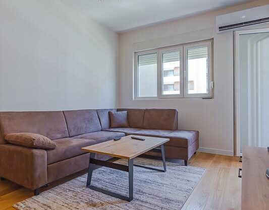 The apartment is fully equipped with new furniture that has not been used until now. The furniture is of very high quality with a beautiful kitchen that also has a storage room . The apartment is 50m2 , which belongs to the category of very comfortable one-room units. There is also a complete small inventory in the apartment as well as dishes for everyday use. The apartment also comes with an underground garage, which is a big advantage considering the fact that there are no free parking spaces in this complex.