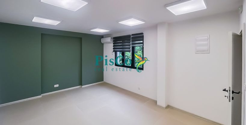 Located in a prime area in the city center, on Bokeška Street in a modern office building, this functional 60m² office space is available for rent. Situated on the elevated ground floor, it is ideal for notary offices, law firms, accounting agencies, IT companies, and similar businesses.