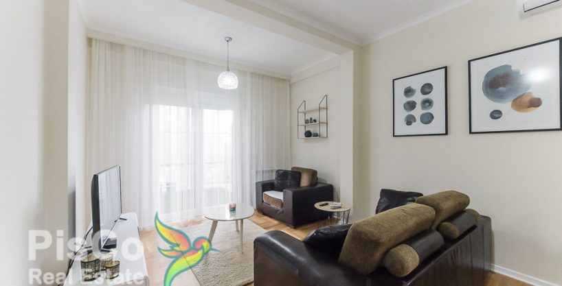The apartment is nicely furnished and very comfortable, the living room is really big and has nice furniture as well as a smart TV. There is also a dining table with chairs as well as a kitchen with all kitchen elements. The long hallway takes you to all rooms, the same hallway has underfloor heating, and also underfloor heating is installed in the bathroom and kitchen. The bedroom has a large double bed and a closet in the bedroom you have a radiator that works on the basis of central heating. The bathroom is fully equipped with all the necessary things.