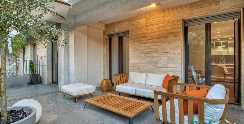 For sale two-bedroom apartment of 90m2, located in the prestigious part of Podgorica, Gorica Lux. It is located on the ground floor of the building. It is a two-bedroom apartment and consists of: living room, dining room, kitchen, two bedrooms, bathroom, and a spacious terrace. It is fully furnished with exclusive furniture from renowned brands such as: Natuzzi Italia, Atemide, Calligaris, Soft Line, Ceramiche, B&B, Pedrali. The kitchen is equipped with Miele appliances, bathroom in natural marble with underfloor heating and shower-massagers. The terrace is spacious and surrounded by greenery, perfect for enjoyment. It has a private parking space with a remote control for the ramp, and there is also the possibility of purchasing a parking garage by arrangement. The apartment is ideal for those looking for supreme comfort, luxury and peace, and at the same time want to be close to the city center.