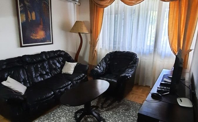 The apartment is located in an older building without an elevator but in a very nice position. This beautifully landscaped neighborhood with lots of greenery gives you everything you need with its immediate surroundings. The large shopping center Gintas with its offer can be a great relief for various shops and a good advantage is the large number of bakeries, pharmacies, cafes and the like in its vicinity.