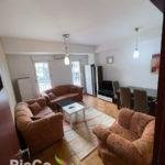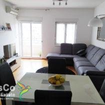 This one bedroom apartment of 51m2 has a great structure. It is very spacious, airy and fully equipped. The large living room is complemented by a corner sofa and chest of drawers with TV, in the extension is a dining room with table and chairs, as well as a fully equipped kitchen with all necessary elements and appliances. The bedroom has a large double bed and large closets are placed along one wall. The bathroom has a shower and a large washing machine. There is also a large closet and bookshelves in the hallway. The apartment is air conditioned and opens onto a balcony where there is also an anodized closet. The building has an elevator and intercom and there is plenty of free parking around the building.