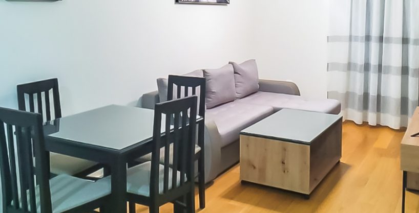Stan je finkcionalan, lijpo osvijetljen. Dnevni boravak posjeduje garnituru, TV i klima uređaj. Kuhinja je potpuno opremljena svim elementima i aparatima. Spavaća soba je sa krevetom i ormanom, ima velika balkonska vrata. Kupatilo je sa velikom tuš kabinom, lijepom keramikom i sanitarijama. Dnevna i spavaća soba izlaze na terasu.