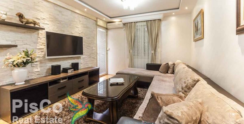 The apartment is located on the fourth floor of a newer building that has an elevator. The apartment is equipped with brand new stuff and looks very luxurious. The apartment itself leaves a very strong impression and we are sure you will like it. The structure of the apartment is such that the living room is very spacious and is connected to the kitchen and dining room. The living room is equipped with comfortable furniture and a new plasma TV, and the kitchen with a beautiful built-in kitchen that fits perfectly into the interior of the apartment. There is one bedroom whose space is filled with a double bed and the other two smaller beds. The apartment is air-conditioned. Each room has a TV.