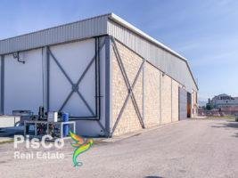 The building is located on a plot of 9,626 m2. The terrain of the plot is flat. The entrance has a sliding gate. The plot is surrounded by a transparent fence at a height of 1.80 m. The surface is asphalt in the front part where the main entrance to the building is, and on the other sides of the building is macadam and a small part of greenery without tall vegetation. On the plot there is a warehouse-type facility, a 400kVA substation, a hydrant, three cooling chambers of a refrigerator, a separate facility with toilets for workers. The main entrance to the building and the asphalt area in front of the building are covered with lighting.