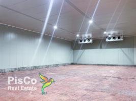 First you enter the main corridor area. The left tract of the building consists of warehouses, the middle tract is a corridor for communication, and the third contains office spaces and warehouses. The warehouse area consists of three cold stores of about 420m2 each, a dry warehouse of 424m2 and a storage room of 100m2. These spaces on this side have a clear height of 6.20m. The middle tract is used for communication and has 584 m2. The entrance and exit doors are sliding 7.35m wide and 5.20m high. In the right tract we have a ground floor and a first floor. On the ground floor there is an office space, a warehouse with toilets, a minus chamber, a machine room. All the rooms have light heights from 2.35m to 3.10m. The first floor is accessed via a staircase to a large dry warehouse. The clear clear height from the floor to the grid roof structure is 3.70m, and in the free part over 4.50m.