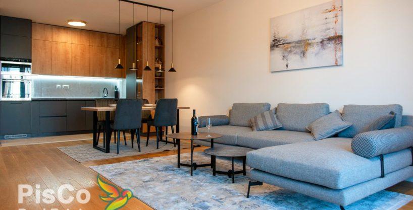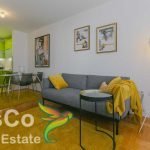 Quality and modern furniture, as well as carefully selected details, make this apartment an attractive and pleasant living space. Apartment with lots of natural light, spacious and comfortable. The living room is light tones, with a large corner sofa, table, TV and air conditioning. Large glass surfaces make this space beautifully lit. Below is the dining area with table and chairs, as well as the kitchen. Brand new, functional, with all the necessary appliances, equipped to the smallest detail – plates, cups, cutlery, dishes, coffee maker, and all other small kitchen appliances. The bedroom is so soft in color, with a large double bed and wardrobe, and also has access to a balcony. The bathroom has quality and beautiful ceramics, large shower and washing machine.