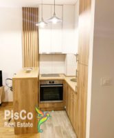 This 27m2 studio apartment is modernly furnished, and the space is beautifully and functionally used. It is completed with a comfortable corner sofa, an armchair and a chest of drawers with a TV. There is also a small dining room as well as a fully equipped kitchen separated by a bar. There are also built-in wardrobes in the hallway. The bathroom has a shower, washing machine and cupboards. The apartment is air-conditioned and opens onto a balcony, the building has an elevator and an intercom, and there are plenty of free parking spaces in front.