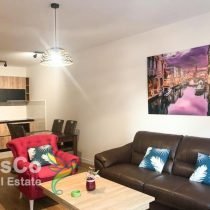 The apartment is luxuriously furnished , it has absolutely everything from small household appliances. We have a large living room with a dining room and a kitchen that has absolutely everything from the kitchen elements, also from the living room you have access to the balcony where there are also chairs and a table. A large hallway leads you to two bedrooms and a bathroom , in one room you have a large double bed with a wardrobe, while in the other you have the same wardrobe and a pull-out bed. The bathroom has absolutely everything, as well as a washing machine, which is very important to everyone. With this apartment, you get your own garage space , which is included in the total price.