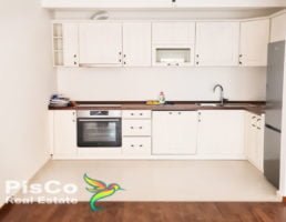 It is a two-room apartment of 72 m2 that is not furnished, only a complete luxury kitchen is installed. Regarding the structure of the apartment, the apartment consists of a spacious living room, two bedrooms, a kitchen and a dining room, as well as a bathroom and a toilet. It is also air-conditioned with a multi-split system with three units. It opens onto two balconies. The building has two roofs, and an underground garage where the future tenant will get one space.