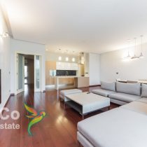The apartment is equipped with a top-quality facade lock that allows high permeability of sunlight and at the same time a high degree of heat and sound insulation. High ceilings provide a feeling of freedom and comfort and a special dimension of enjoyment. The apartment has two bedrooms and has exactly 116 m2, a large hallway that leads you to the other rooms. The apartment has a dryer with a smaller guest toilet, a large living room that is really huge has a large set with the latest smart TV, there is also a dining table with chairs, as well as a modern kitchen with all possible white goods. One extremely good thing about this apartment is that each room has its own bathroom as well as a plasma TV. The only difference is that the main room, which is larger, has a balcony overlooking the courtyard side of the building, and also has a room that is like a wardrobe and from the wardrobe you have access to the bathroom. The huge virtue of this apartment is that it is oriented on two sides, one side is east, while the other is west, so you have a view of both the courtyard side of the building and the main street. Along with the price of the apartment, you also get two garage spaces when renting.