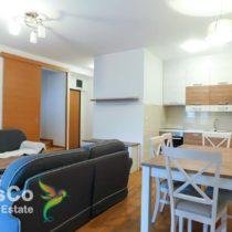 The apartment is very modern and is sold furnished. The living room has a new set, a dining table and a new modern kitchen with all kitchen appliances. A wooden sliding door separates the staircase from the living room, which leads to the second level, where there are three rooms and a bathroom. In two rooms there are double beds and closets and in the third there are two single beds. The apartment is fully air conditioned, has an intercom and the bathroom has a bathtub and washing machine.