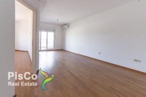 The apartment is three-room, 90m2, unfurnished. The living room is spacious and beautifully lit. The kitchen is in the continuation of the living room. One of the three bedrooms is located in the part where the living room is, it has an unusual shape but is completely functional. The other two rooms are of standard dimensions, nicely lit. The apartment has a bathroom with a shower and a smaller guest toilet. The apartment has a large balcony.
