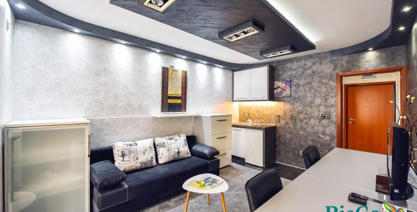 The studio apartment has an area of 25 m2, is fully equipped and very comfortable for living. It has two pull-out seats, air conditioning, a large desk. The kitchen has all the necessary appliances. The dining area is located next to the window, so it is a very pleasant corner for morning coffee. The bathroom has a shower cabin and a washing machine. The studio apartment does not have a balcony. It is very nicely arranged, with fine lighting and furniture, and nice decorative details.