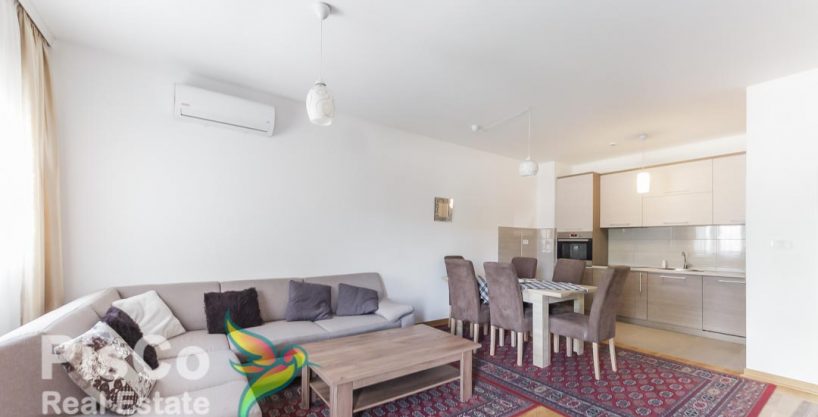 The apartment is nicely equipped with new furniture, has a large living room with beautiful furniture, there is a plasma TV and exit to the balcony. There is also a kitchen with a dining table and chairs, the kitchen has absolutely all the kitchen elements and white goods. The apartment has two bedrooms, one of which has a large double bed and the other has a sofa bed and closets for things. The apartment also has a guest toilet and a large bathroom for the host. Each room is equipped with air conditioning and also in the kitchen you can add cooking utensils if you are missing something.