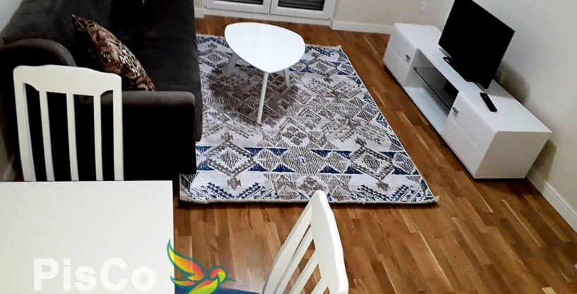 The apartment is comfortable and spacious, south oriented, so it is filled with plenty of natural light, and warm. The living room has new furniture, furniture, TV and air conditioning, and has access to a balcony. The living room has a dining area with table and chairs, and below is a comfortable and functional kitchen, equipped with new elements and all necessary appliances. The bedroom is nicely lit, also with new furniture. The bathroom is fine sanitary, with bath and shower. The apartment is located in a building that has two elevators, and whose entrance is maintained and clean. There is a large free car park around the building.