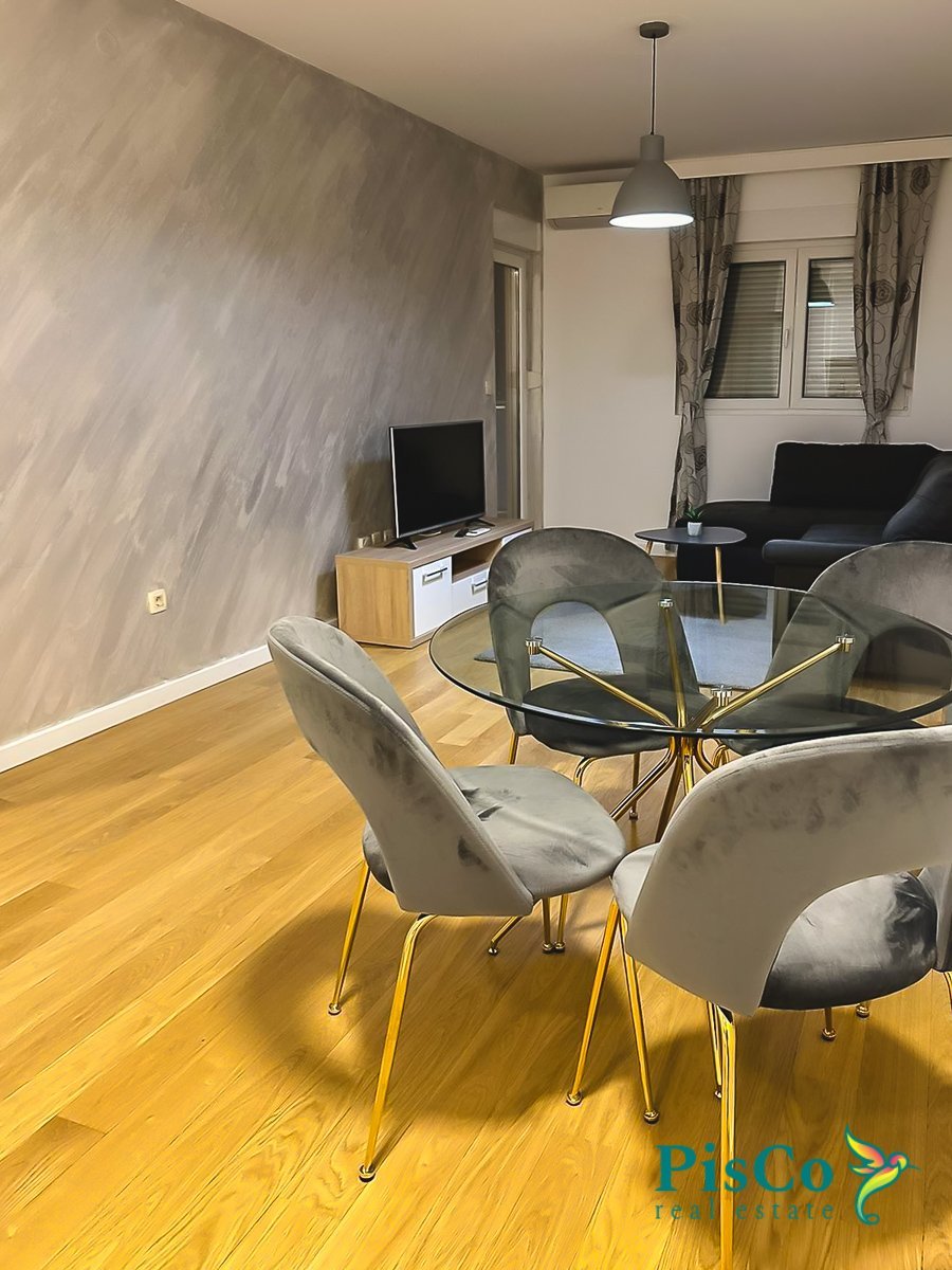 The apartment is located in a building in the City quarter. Everything you need for everyday life is in the surroundings – Voli market, shops, pharmacies, banks, bakeries, cafes and restaurants. There are also two shopping centers. Only 5 minutes away is the Tološka forest with its recreational facilities and walking trails.