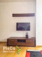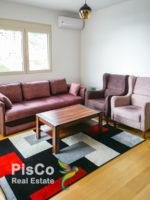 The apartment is sold fully furnished, as in the photos. The living room has a sofa and two armchairs, TV and air conditioning. There is a dining room and a kitchen. The bedroom has a large double bed and a wardrobe. The bathroom has a shower and washing machine.