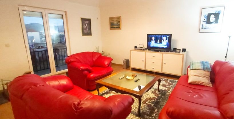 The apartment is larger one-bedroom in structure and layout, but with a little investment it can be adapted into a comfortable two-bedroom apartment, because the living room with dining area and kitchen has 45m2. So the living room is spacious, with lots of natural light because the entire length is a balcony that can be accessed from both the living room and kitchen. The kitchen is beautiful and equipped with all necessary elements and appliances. The bedroom has a double bed and a wardrobe and has a French balcony. The bathroom is tidy, with a shower. The hallway is also spacious and functional. He moved in only three years ago, so the apartment is preserved and in good condition.