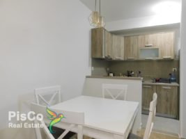 The apartment is spatially nicely arranged and very functional. It is modernly equipped with new furniture in every part of the apartment. The apartment is first entered in the hallway, from where all the rooms are separated. The living room is equipped with new furniture and a TV, and there is a dining table in the extension. The kitchen is separated by a small bar and the kitchen has access to the hallway. The bedroom has a double bed and a large wardrobe. There is also a balcony that can be accessed from the living room as well as the bedroom. The apartment is fully air-conditioned with a separate unit in the bedroom and the bathroom has a shower cabin and a washing machine.