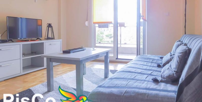 The apartment is one bedroom and is located on the third floor of a building with an elevator. The apartment is nicely arranged and comfortable to stay, facing the courtyard side of the building so there is no noise. The living room is very functional, bright and pleasant to stay in and opens onto a terrace. Bedroom with a large comfortable double bed and wardrobe, and there is a kitchen that has all the necessary equipment and elements, as well as a dining table. The apartment is air conditioned. The price of the apartment includes internet and cable.