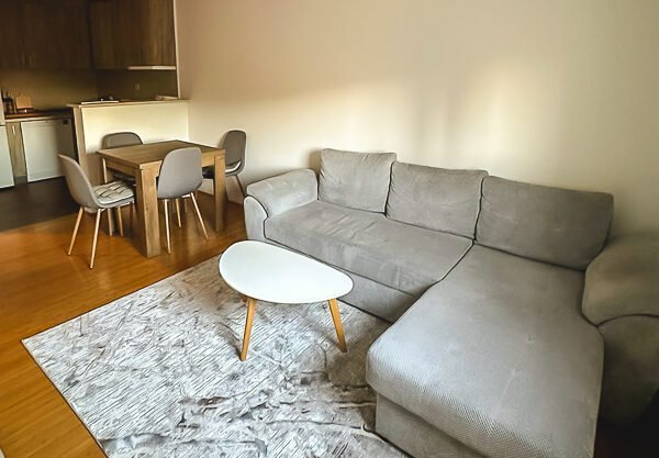 The apartment is nicely furnished and very functional. In the living room there is a new set and a TV with a chest of drawers. Downstairs is a dining table and a kitchen equipped with all necessary kitchen elements. The bedroom has a double bed and a large wardrobe.