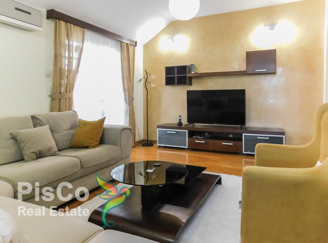 The apartment is located on the seventh floor and the building has two elevators. The apartment is equipped with new things and equipment . Carefully selected ceramics of top quality and design, sanitary ware, floors, wall colors, exterior and interior locks are part of the interior of the apartment, as well as an architecturally decorated and stylized terrace where you can stay all year round. The living room space is filled with new furniture, which is followed by a kitchen with the latest equipment and the latest elements that are very nicely integrated into the interior of the apartment, there is also a bedroom strong> with a comfortable and large double bed and wardrobe. The apartment is air conditioned. TV will be added .