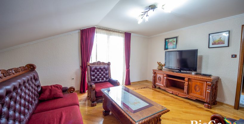 Ukupna površina stana je 100, uz dodatnih 32m² terasa, što daje prostran i svijetao ambijent. Stan ima više izlaza na terase, terase su povezane sa dnevnom sobom, trpezarijom i master spavaćom sobom. Namještaj u kuhinji, dnevnoj sobi, trpezariji i dvije spavaće sobe izrađen je od kvalitetnog punog drveta, što dodatno doprinosi toplini i dugovječnosti enterijera. Stan je lijepo pozicioniran, veoma osvijetljen i prodaje se potpuno namješten.
