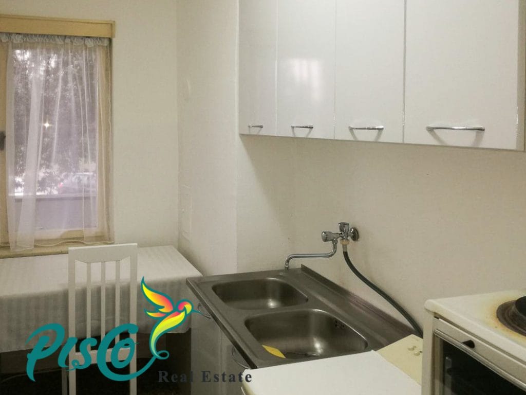 The interior is functional and bright. It is done because it takes into account that it is a small space, so the colors used are bright and fresh. The furniture is also comfortable and functional. The apartment is equipped with all appliances for a comfortable stay, such as kitchen elements, washing machine, TV, etc. The kitchen is small but nicely integrated into the space.