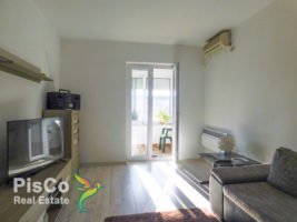 The apartment has a very interesting and functional layout. From the hall, you enter the large living room on the right, which has an exit to the glazed terrace. This terrace is perhaps the most beautiful corner of the apartment because it is spacious, with a beautiful view and is an ideal place for morning coffee. The kitchen is equipped with the necessary appliances and is connected to the dining room. It has a window that is connected to the terrace, which gives light to the entire apartment. The apartment is air-conditioned, has an intercom, and the bathroom has a shower cabin and a washing machine.
