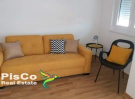 The studio apartment is 26m2, it is nicely and comfortably furnished and has everything you need. The sofa set is extendable, a TV is placed opposite it, and the modern kitchen has all the necessary kitchen appliances. The apartment is air-conditioned and there is a large wardrobe in the hall.